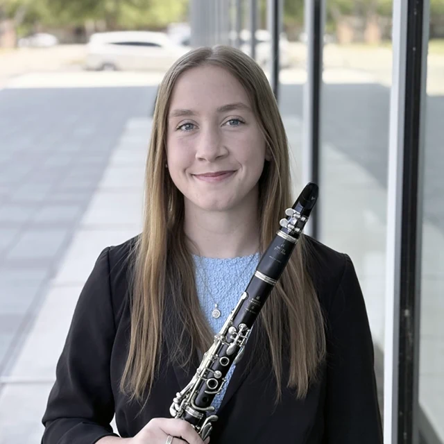 She plays the Bb clarinet in the Wind Symphony, Horned Frog Marching Band, and Clarinet Choir. In addition to her role as a TCU Music Ambassador, she is an active member of Kappa Kappa Psi, the School of Music Advisory Committee, and other student organizations, and cannot wait to meet the next generation of Horned Frogs!